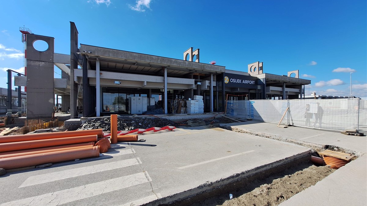 Rekonstrukcija putničkog terminala Zračne luke Osijek napreduje iz dana u dan, a promjene su već sada jasno vidljive na gotovo svim pročeljima zgrade.
